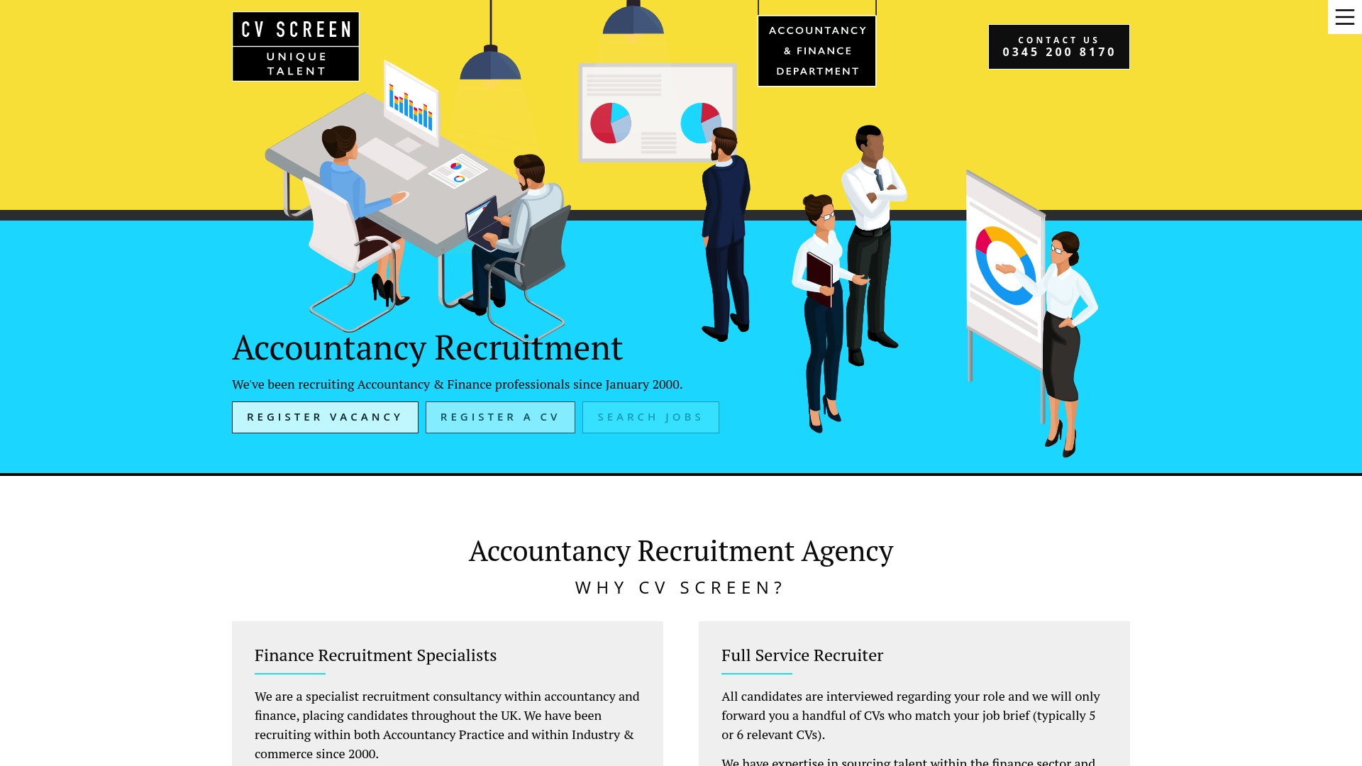 CV Screen is a specialist recruitment consultancy in accountancy and finance that has placed candidates across the UK since 2000. It offers a full service recruitment process with a clear candidate guarantee and a transparent 15% placement fee, making it a straightforward choice for permanent hires.