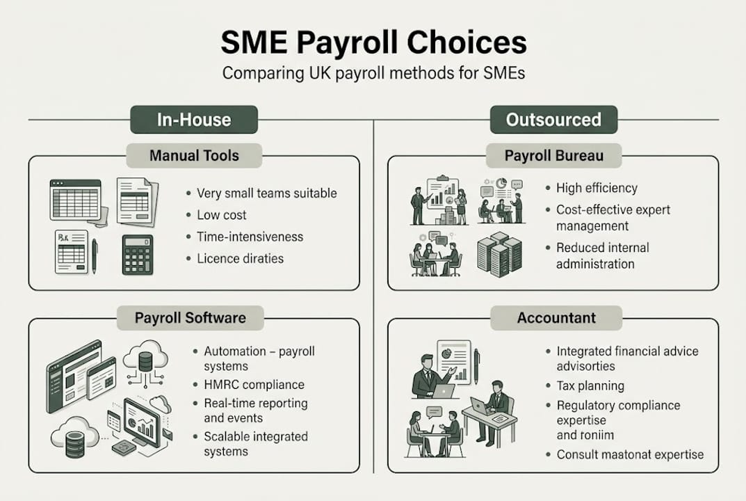 Understanding the steps is one thing. Deciding how to handle payroll is another. Here is how your options stack up for a typical UK SME.